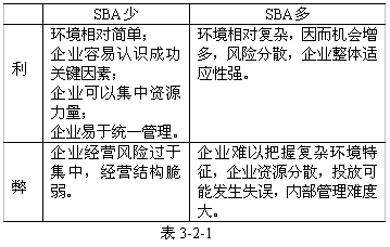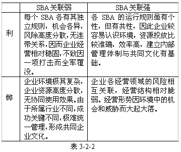 1.企业SBA结构类型: 以SBA的数量多少和SBA的关联性强弱为划分标准,可以形成四种SBA结构类型,每种类型又可划分为若干子类型。